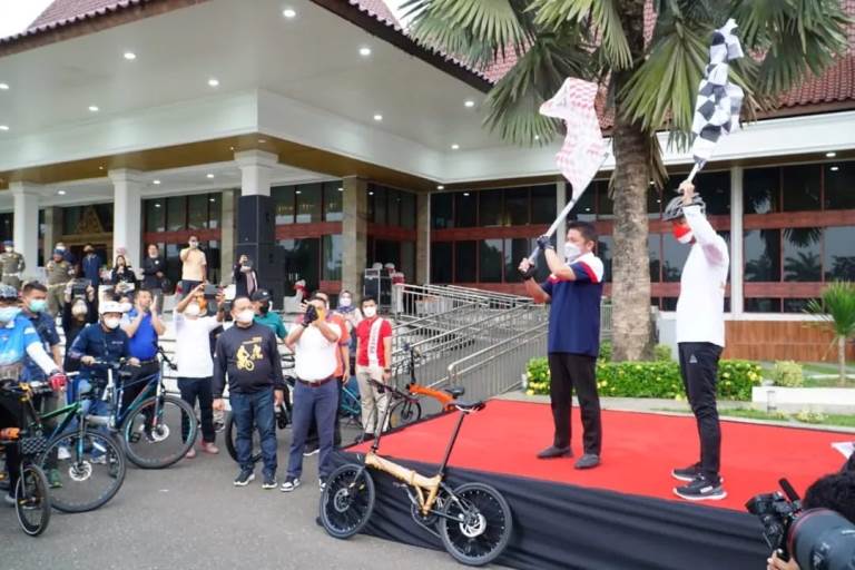 Dimana, gowes tersebut diawali dari Griya Agung Palembang hingga menyusuri jalanan kota Palembang hingga berakhir di wisata Sungai Sekanak Lambidaro.